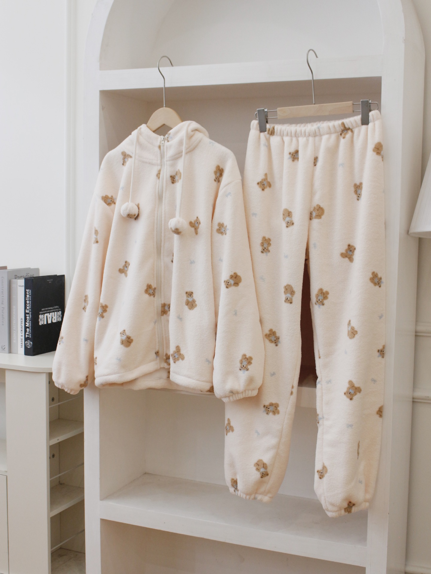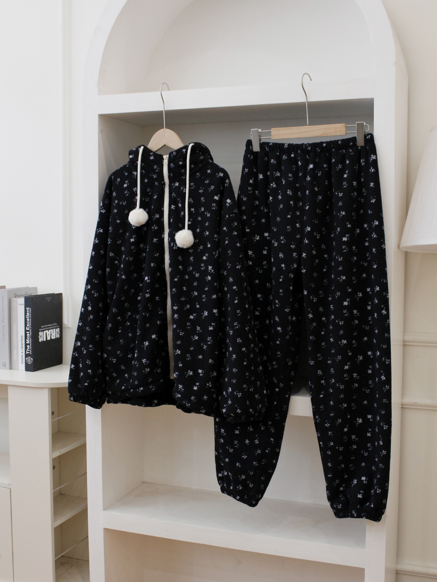 Product information: Thickness: Thickened Fabric Name: Fleece Applicable Scenes: Home Styles: Wool hooded set milk floral, Wool hooded set night flower shadow, Wool hooded set flower field, Wool hooded set soft cute bear Main Fabric Composition: Polyester (Polyester Fiber) Pants Length: Pants Applicable People Category: Middle-aged Youth Teenagers Sizes: M, L, XL Functions: Casual, Breathable, Sleep, Bath, Comfortable, Can be worn outside Fabric Thickness (Weight): Thick (251-300g/m²) Sleeve Length: Long Sleeve Suitable Season: Winter